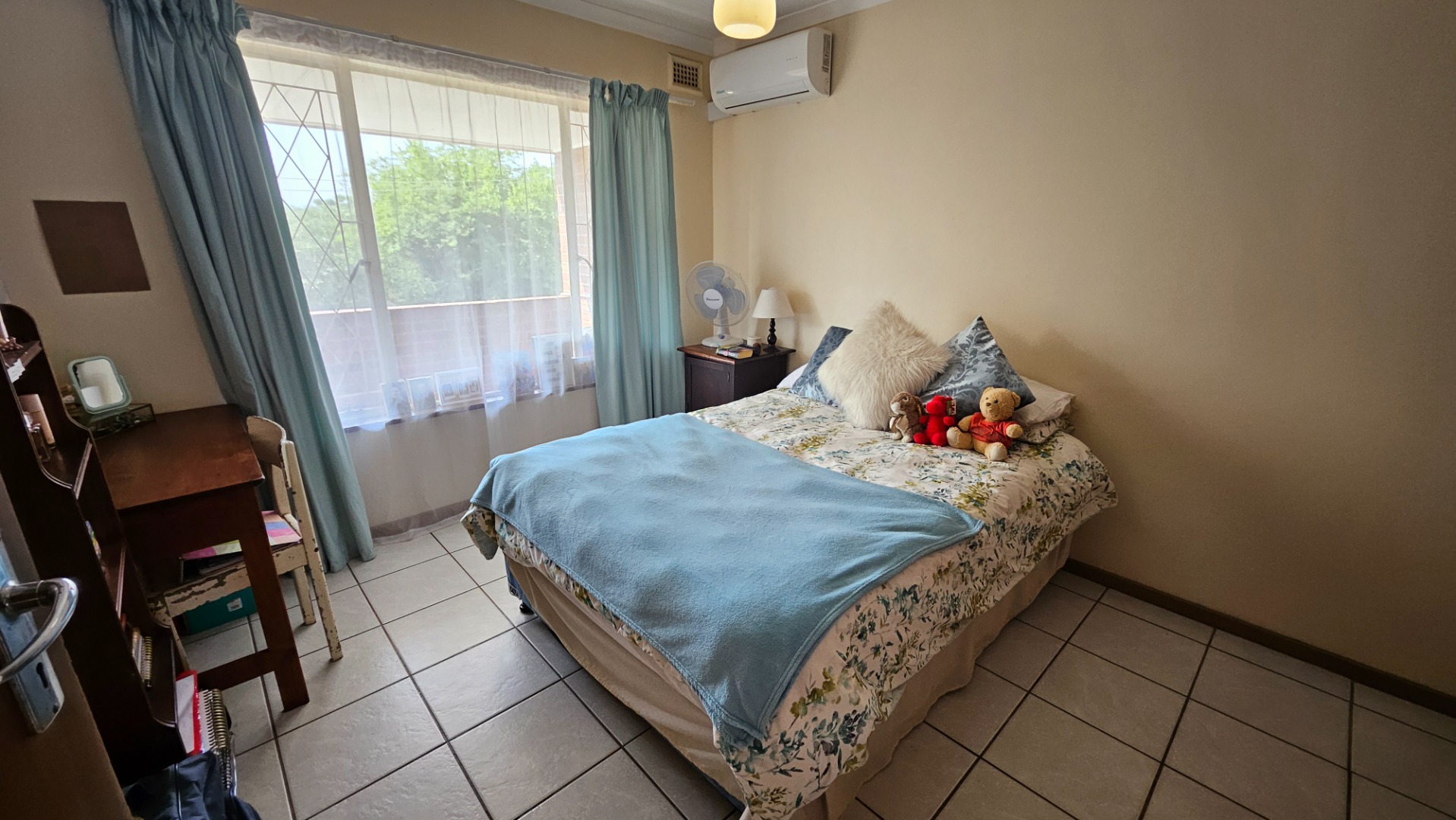 Upstairs, you’ll find three bedrooms, all with built-in cupboards. The main bedroom opens onto a lovely covered balcony and includes an en suite bathroom. The remaining two bedrooms are both air-conditioned and served by a second bathroom.